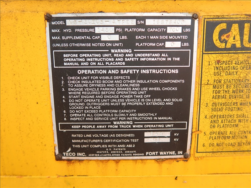 BUCKET TRUCK, TECO V5-50I05-4TFE2, 700 LBS, HYD OUTRIGGERS, 6 CYL DIESEL, AUTO (CONSIGNOR DISCLOSURE: UPPER BUCKET CONTROLS DO NOT WORK)