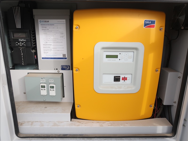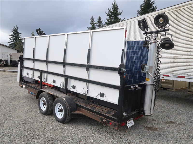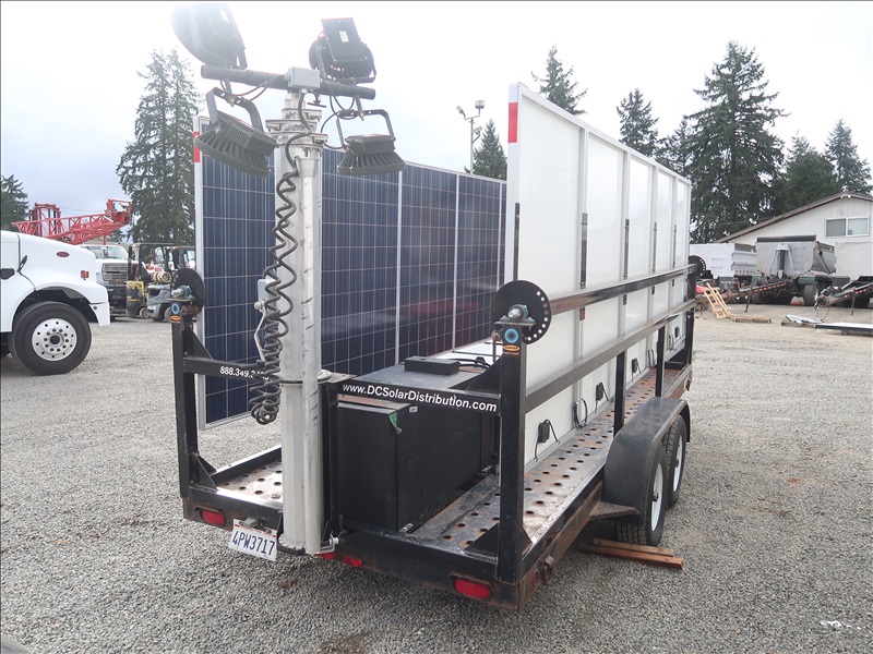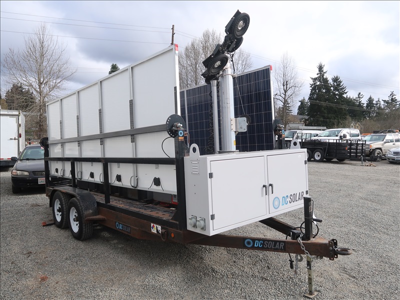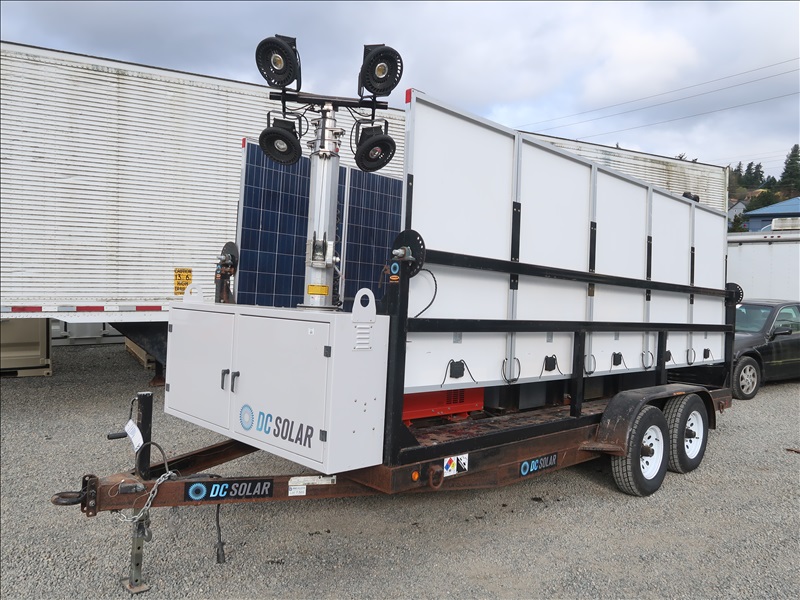17' DC SOLAR TRAILER, KUBOTA LOWBOY 2 GL 11,000 W DIESEL GENERATOR, 125 HRS, 113-GAL FUEL TANK, (10) BOVIET 255 SOLAR PANELS, (2) 48V, 540 AH BATTERY BANKS, US TOWER LED LIGHTS, ELECTRONIC BRANDS CONSIST OF SMA, MIDNITE, & MORE (CONDITION UNKNOWN, PLEASE