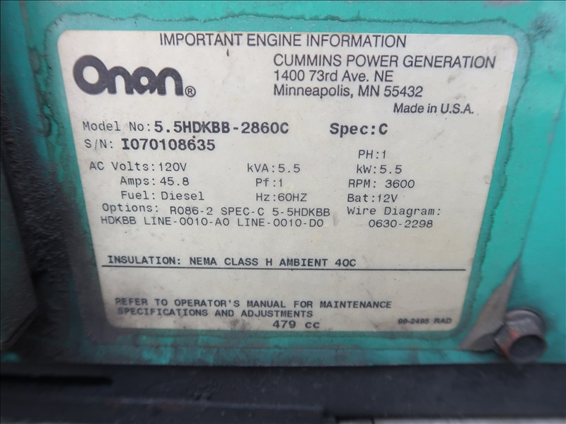 STEP VAN, ONAN 120V DIESEL GEN SET, CUMMINS ISB, AUTO