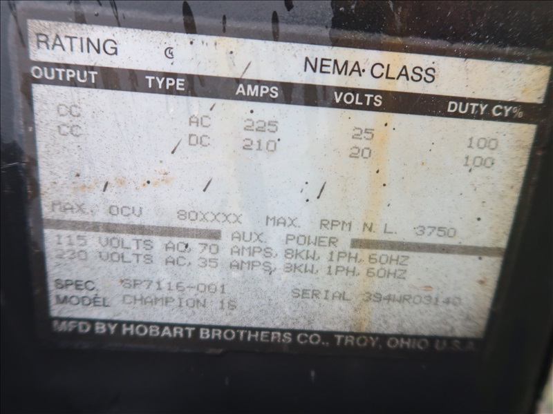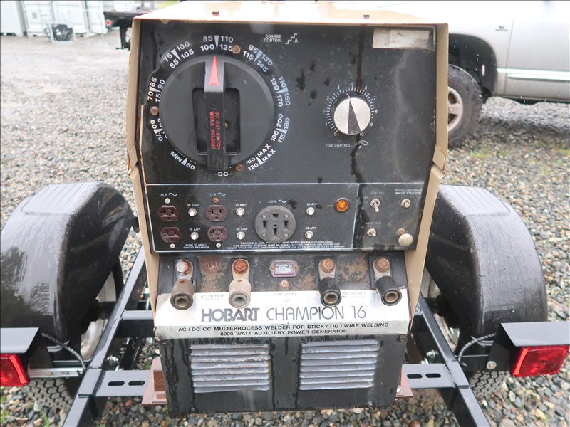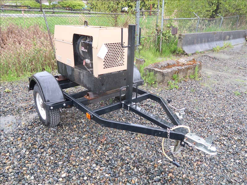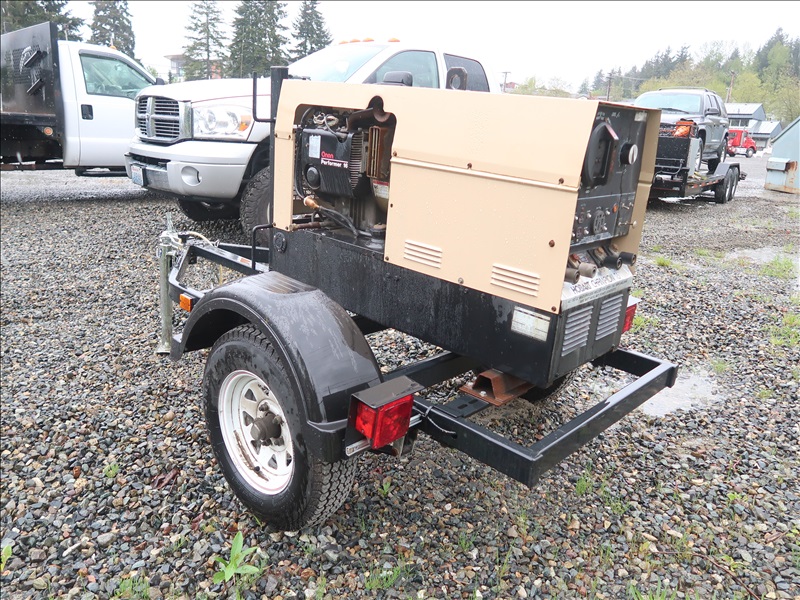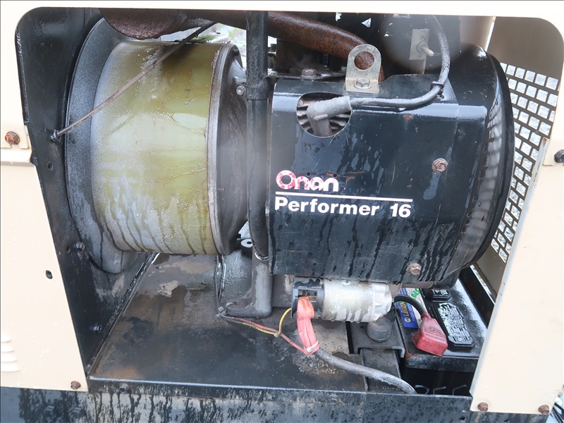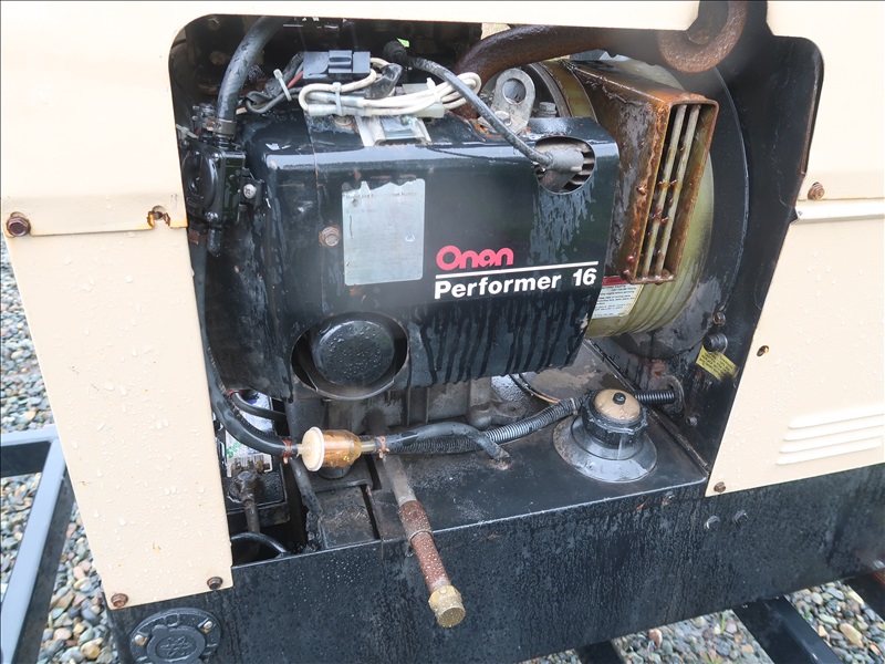 S/A, TRAILER MOUNTED 8,000W/225A AC/DC GENERATOR/WELDER, ONAN 2 CYL GAS, 115/230V, SINGLE PHASE, 175/80-D13, HOUR METER READS: 891 (WILL ONLY RUN W/CHOKE ON, PLEASE PREVIEW)