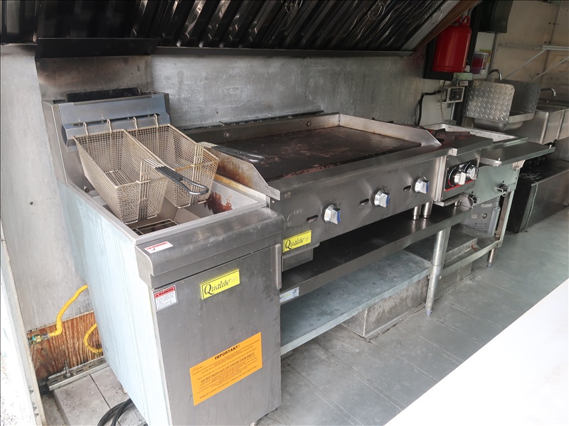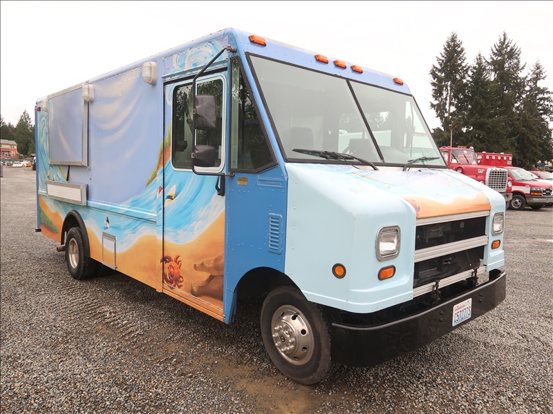 CONCESSIONS FOOD SERVICE TRUCK, V8, AUTO, GRIDDLE, 2-BURNER STOVE TOP, 2-COMPARTMENT DEEP FRYER, 2-COMPARTMENT FOOD WARMER, (2) REFRIGERATED PREP TABLES, HAND WASH STATION, 6-GAL WATER HEATER, FIRE SUPPRESSION SYSTEM, ONAN 120V GENERATOR