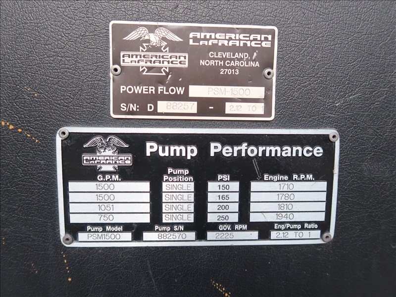 PUMPER TRUCK, DETROIT SERIES 60, AUTO, POWER FLOW, P.S.M. 1500, 1,500 GPM