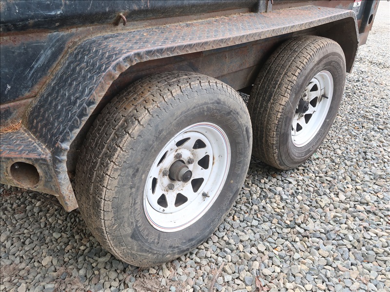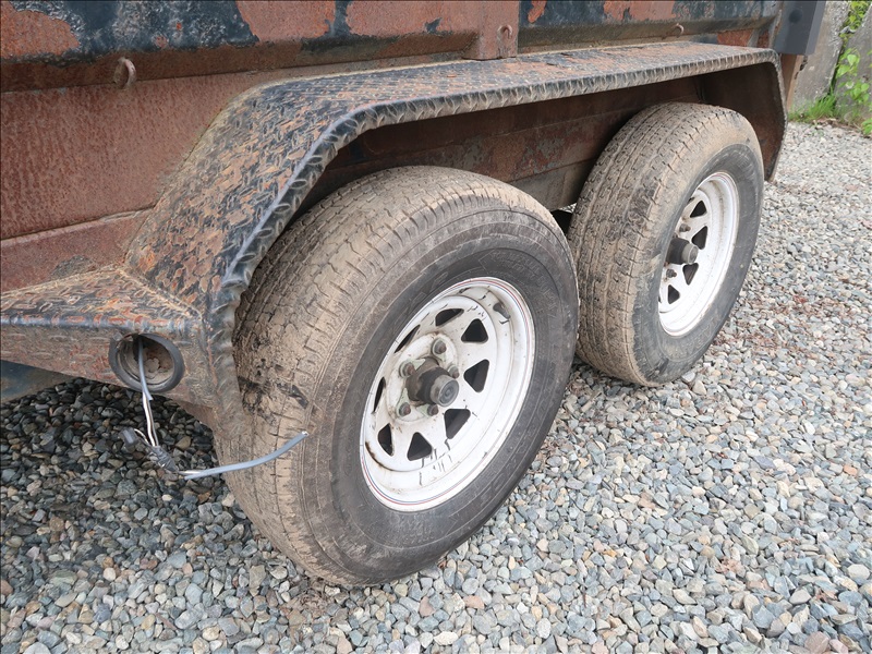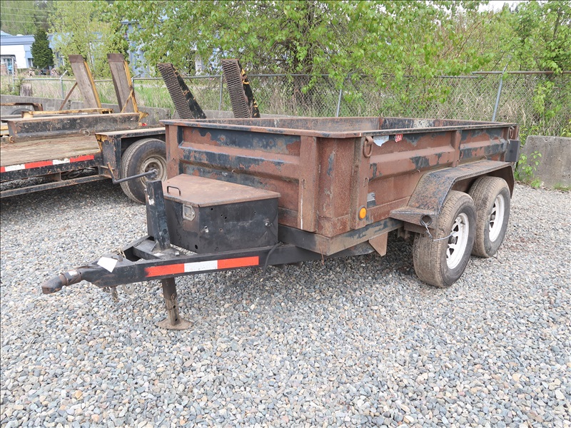 T/A, 10' X 5' DUMP TRAILER, E/B, SWING GATES, 225/75R15 (NOT ROAD WORTHY, NO LIGHTS OR WIRING, NO HYDRAULIC PUMP FOR LIFT OR BATTERIES, PLEASE PREVIEW)