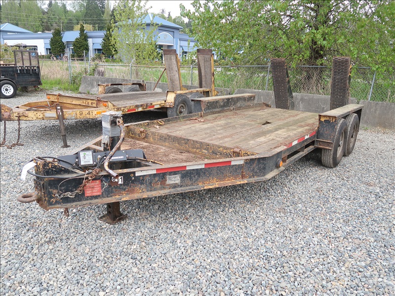 T/A, 16' 12,000 LB GVWR FLATBED TRAILER, E/B, RAMPS, 225/90-D16