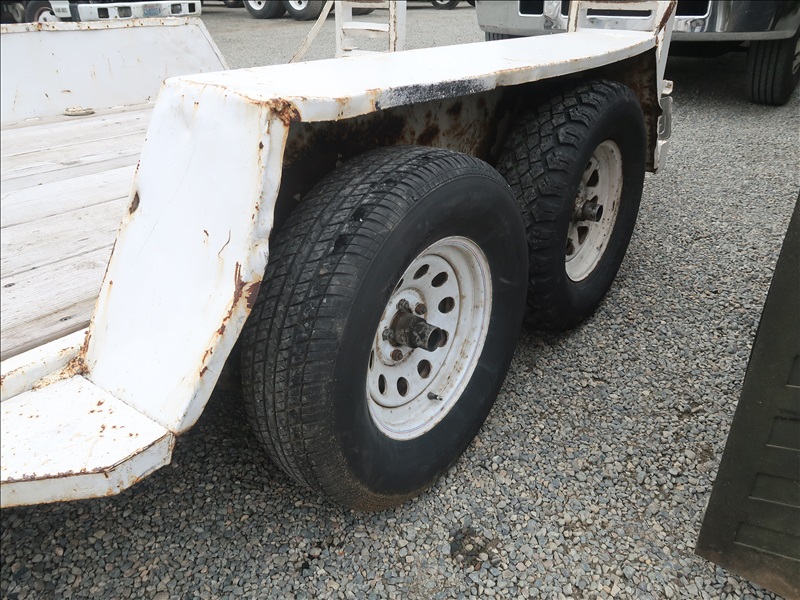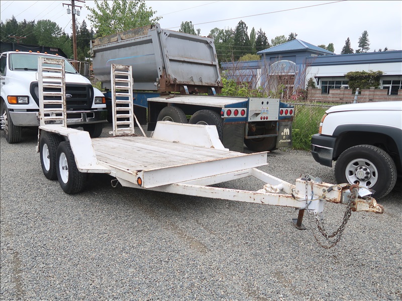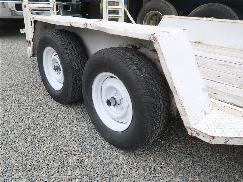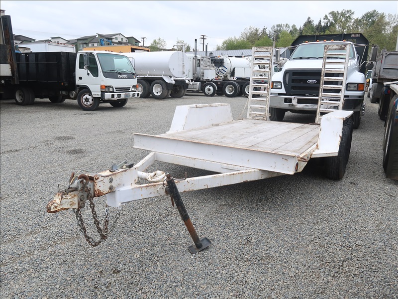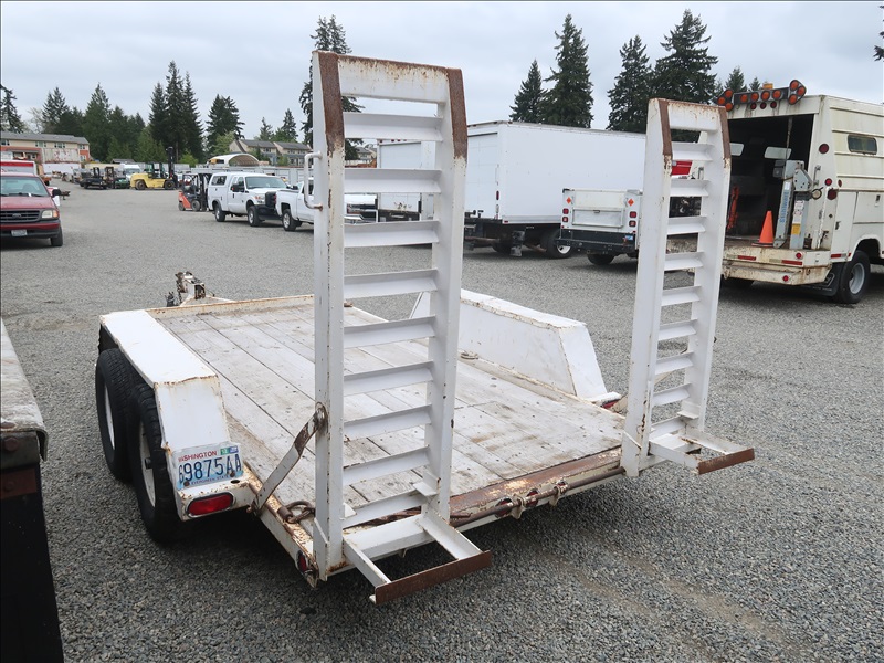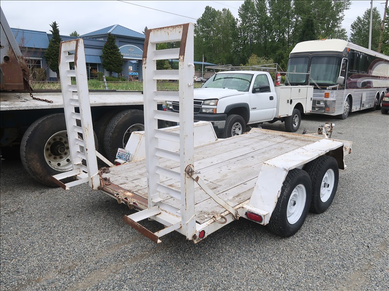 T/A 12' FLATBED TRAILER, SPRING SUSPENSION, SURGE BRAKES, DROP DOWN, RAMP
