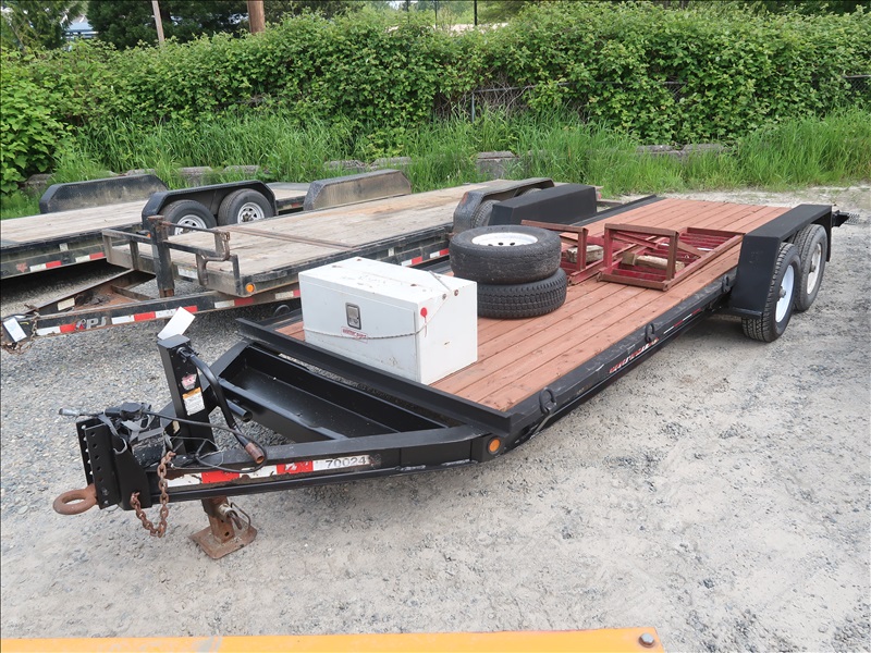T/A, 20' 15,300 LB GVWR FLATBED TRAILER, E/B, RAMPS, (2) SPARE TIRES, 245/75R16