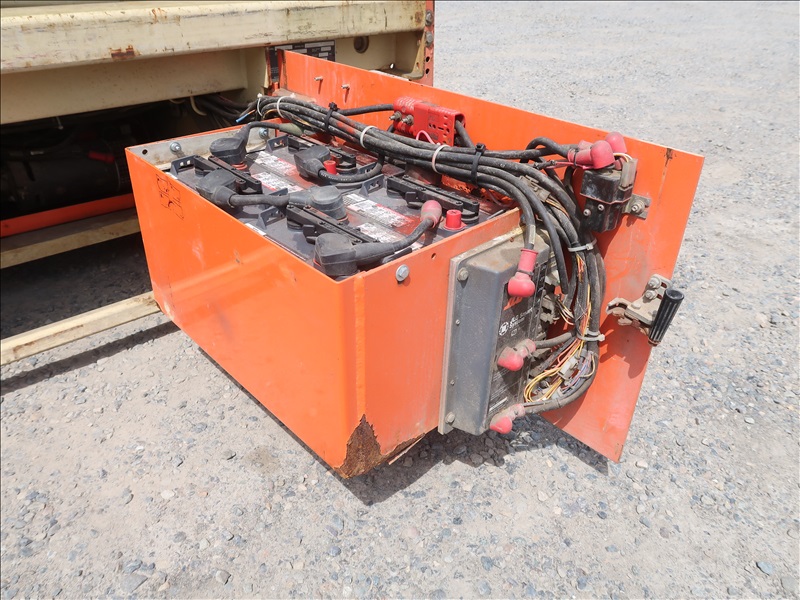 19', 500 LB, 24V SCISSOR LIFT W/ON BOARD 24V BATTERY CHARGER, 110V