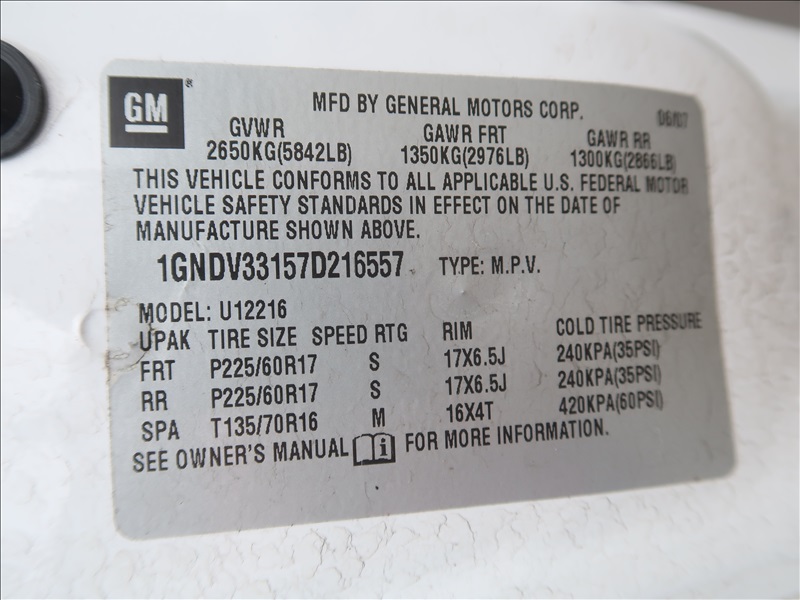 2007 CHEV UPLANDER PASSENGER VAN