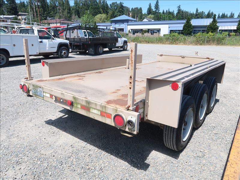 TRI/A 14' X 71" FLATBED TRAILER, FUEL TANK, SPRING SUSPENSION, E/B, 215/75R17.5