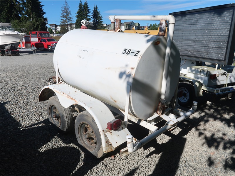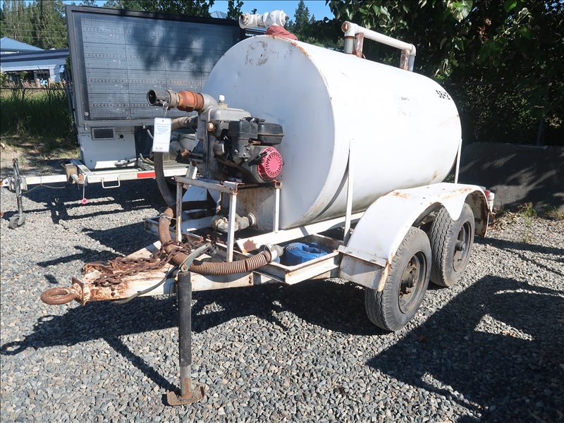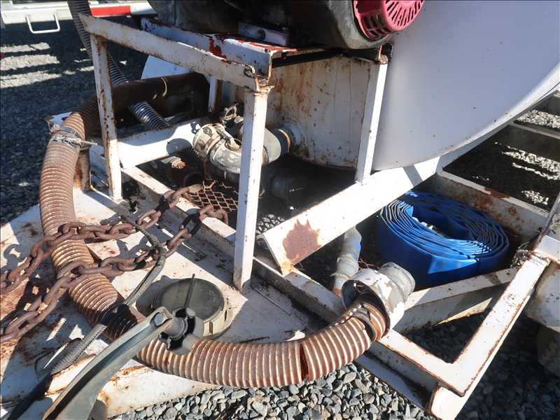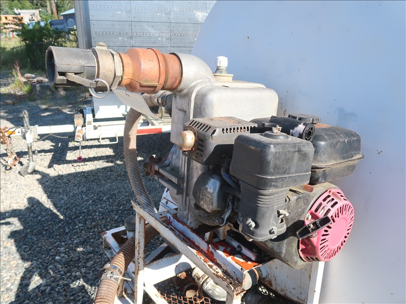 T/A TRAILER MOUNTED WATER TANK, GAS WATER PUMP, 7-14.5