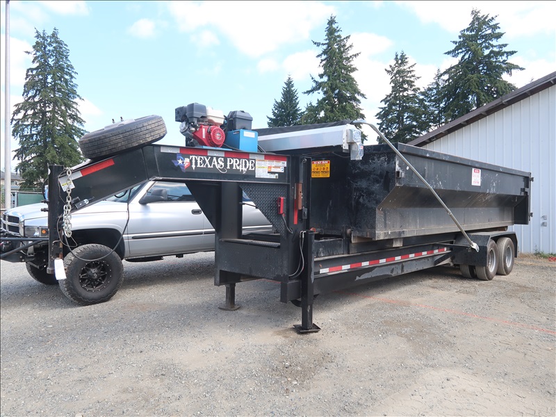 T/A 26' 25,990 LB GVWR GOOSENECK LOW HOOK ROLL OFF TRAILER, HYDRAULIC LANDING GEAR & TILT, HONDA GX390 POWER SUPPLY, TARPING SYSTEM, SPRING SUSPENSION, ELECT BRAKES, TIRE SIZE: 235/80-R16 W/20' ROLL OFF BOX