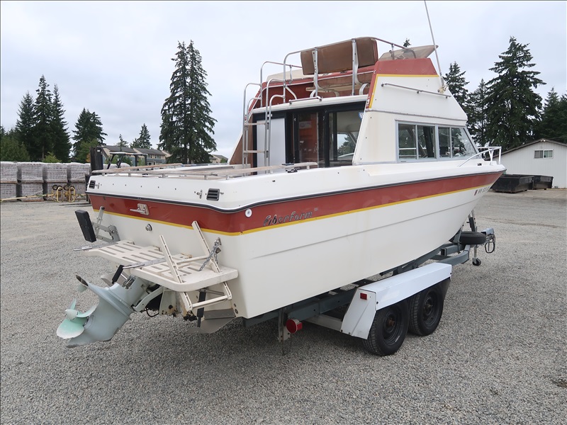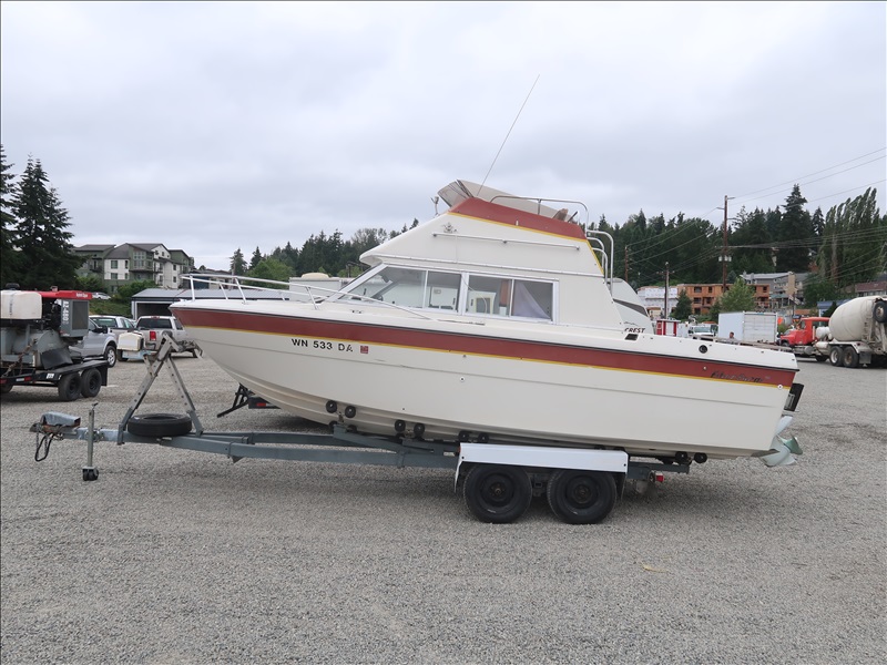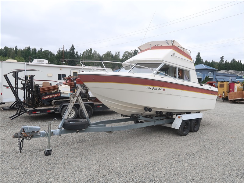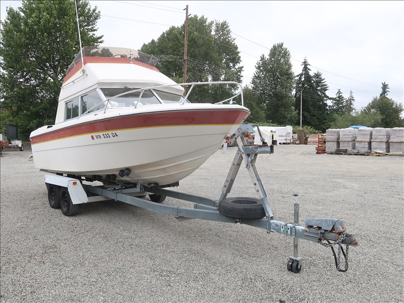 21' CABIN CRUISER, VOLVO PENTA, V8 (NEEDS REPAIRS, CONDITION UNKNOWN, PLEASE PREVIEW), WITH T/A BOAT TRAILER, S/N: 803462