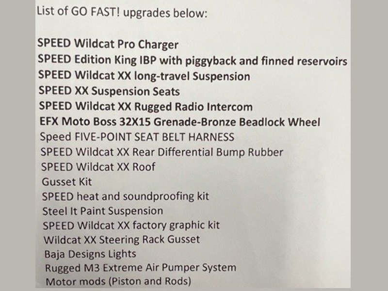 4WD "ROBBY GORDON EDITION" UTV, 3 CYL ENGINE W/PRO CHARGER B-1 SUPER CHARGER, AUTO, KING SHOCKS, LONG TRAVEL SUSPENSION, RUGGED RADIO, RUGGED M3 EXTREME FRESH AIR PUMP, 32" X 10.00X15 TIRES W/BEAD LOCKS (SEE ATTACHED FOR MORE SPECS)