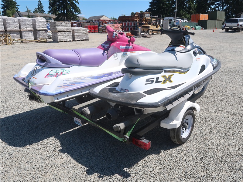 (1) 1999 POLARIS SLX PERSONAL WATERCRAFT, 3 CYL, GAS, S/N: PLE06975B999 & (1) 1995 KAWASAKI STS PERSONAL WATERCRAFT, 2 CYL, GAS, S/N: KAW96323B595 W/2003 2-PLACE PERSONAL WATERCRAFT TRAILER S/N: 468WB15113100054