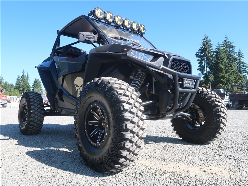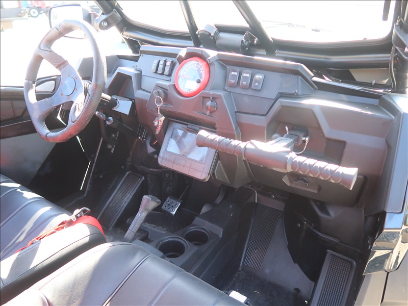 4WD CUSTOM UTV, 2 CYL, AUTO, WALKER EVANS SHOCKS W/SHOCK THERAPY SPRINGS, STREET LEGAL KIT, PRP SEATS, SUPER ATV A-ARMS, SPARE TIRE, KC LED LIGHT BAR, TIRE SIZE: 32X10X14 W/BEAD LOCKS (SEE ATTACHED FOR MORE SPECS)