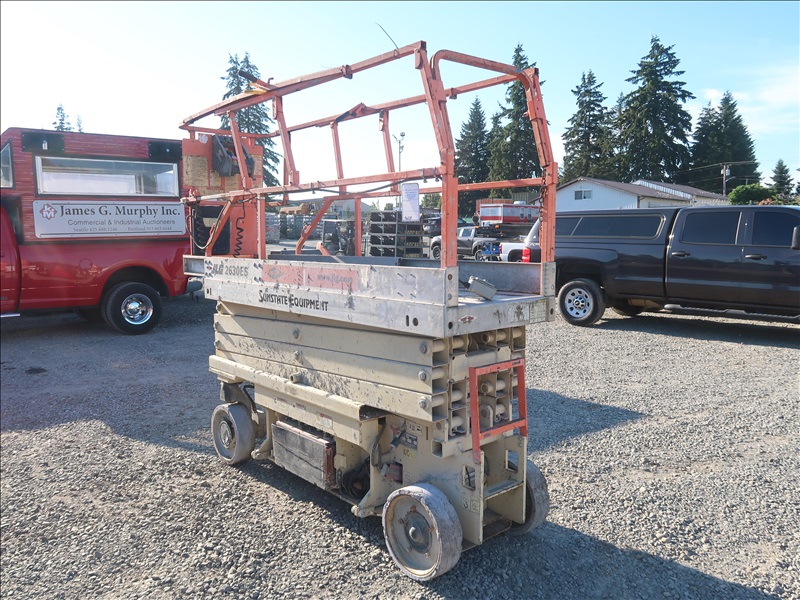 25', 500 LB, 24V SCISSOR LIFT (NEEDS REPAIR, NON-OPERATIONAL, PLEASE PREVIEW)