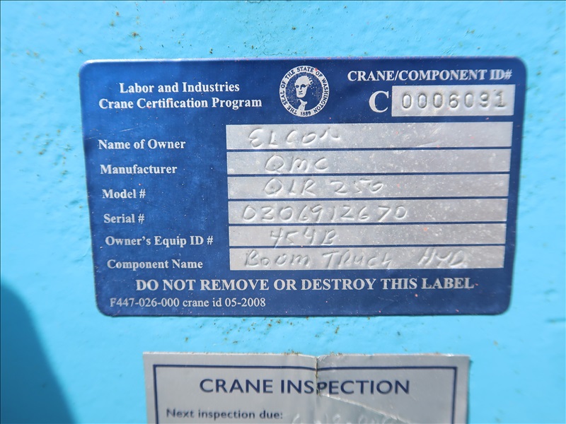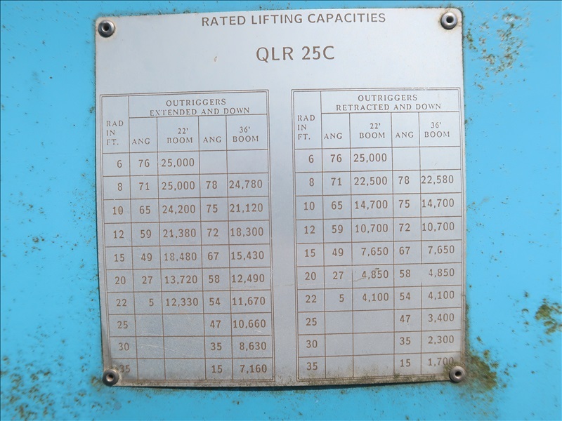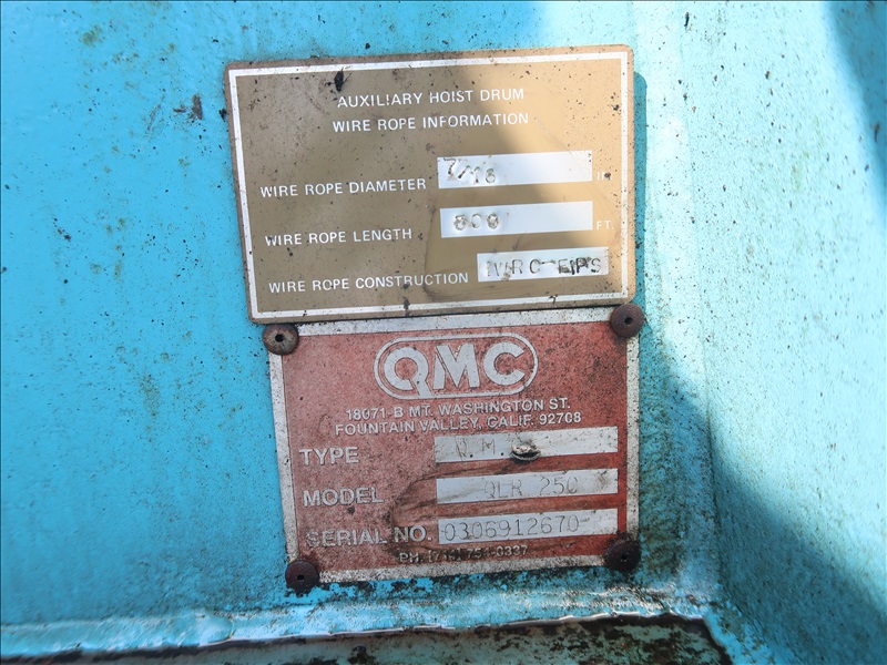 T/A, CRANE TRUCK, 6 CYL DIESEL, AUTO, QMC QLR 250, HYD OUTRIGGERS