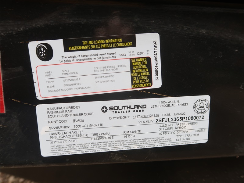 T/A 14' X 7' 15,400 LB GVWR HYDRAULIC DUMP TRAILER, 2-DOOR TAILGATE, TARP SYSTEM, ELECT BRAKES, TIRE SIZE: ST235/80R16