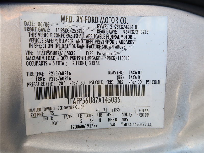 2007 FORD TAURUS 4DR SEDAN