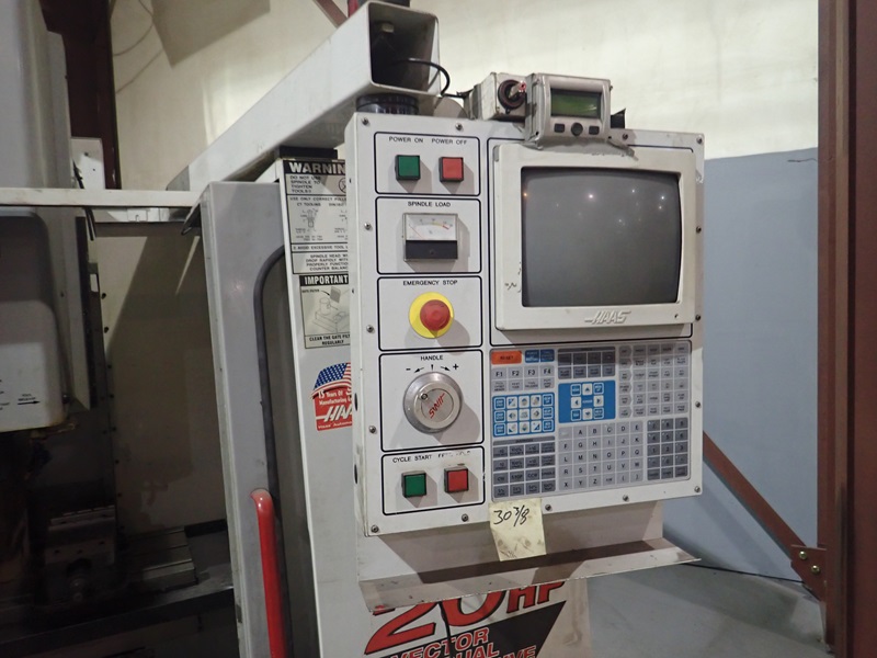CNC VERTICAL MACHINING CENTER, 14" X 36" TABLE, 20-STATION ATC, CHIP AUGER, (2) KURT VISES