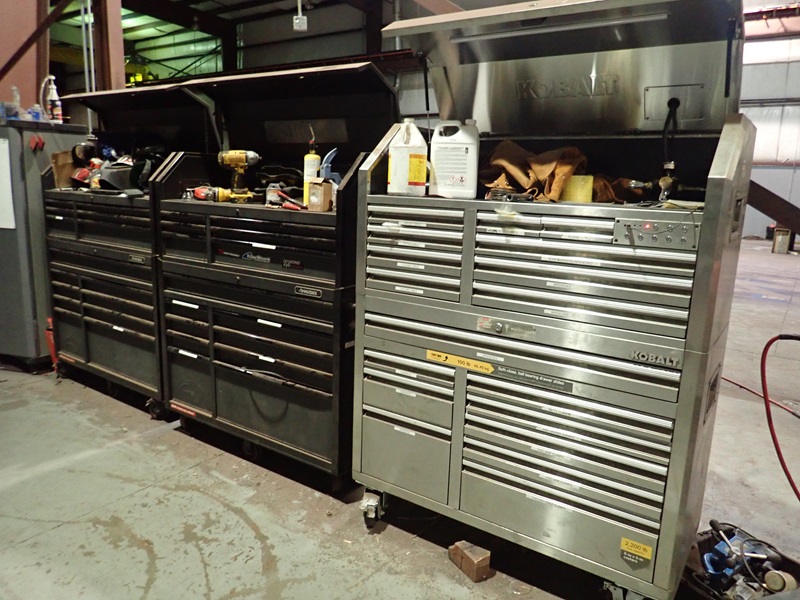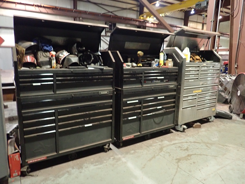 (3) TOP & BOTTOM ROLLAWAY TOOLBOXES W/HAND TOOLS