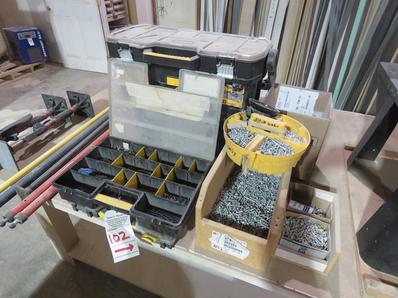 LOT, ASSORTED HARDWARE & TOTES IN THIS ROW