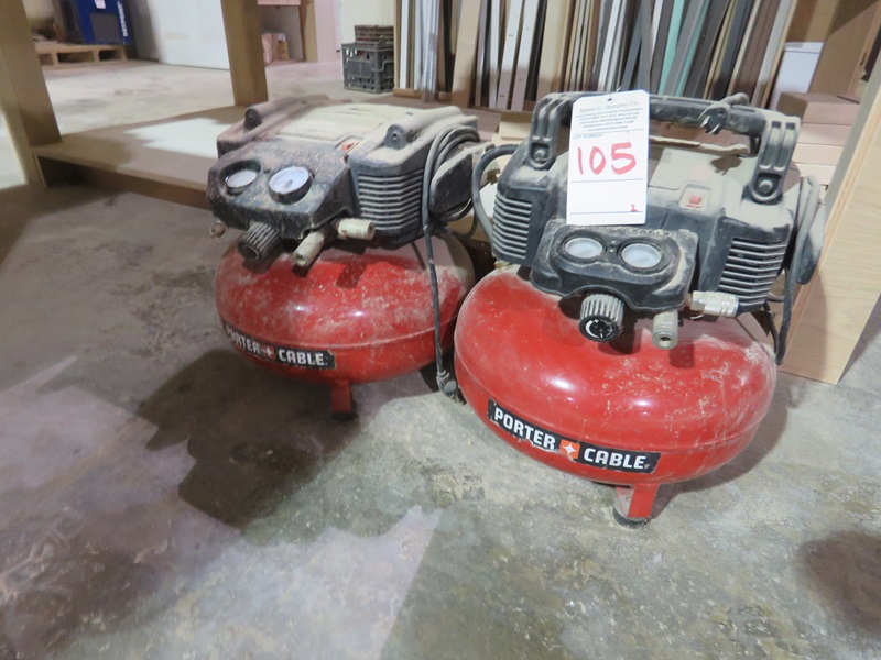 LOT, (2) PORTER CABLE 6-GAL PORTABLE AIR COMPRESSORS (NEED REPAIR)