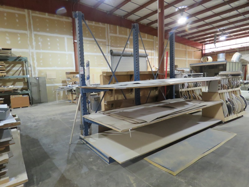 12' X 10' SECTION OF CANTILEVER SHELVING (CAN BE PICKED UP BY APPT ONLY OR 9 AM MONDAY, JAN 24TH, $250 REFUNDABLE DEPOSIT REQUIRED TO ENSURE BUYER GRINDS DOWN ANY BOLTS FLUSH W/THE FLOOR)