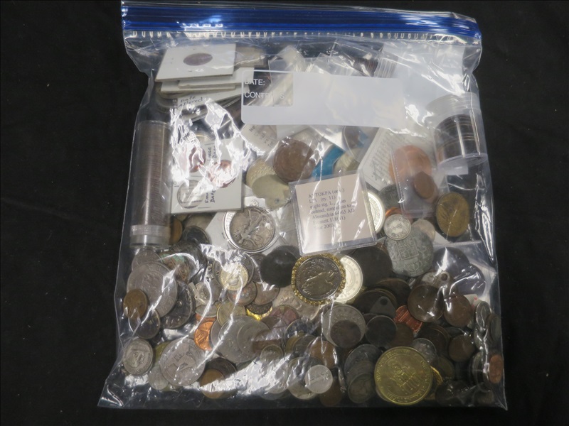 LOT, ASSORTED US FOREIGN COINS, TOKENS & MEDALLIONS