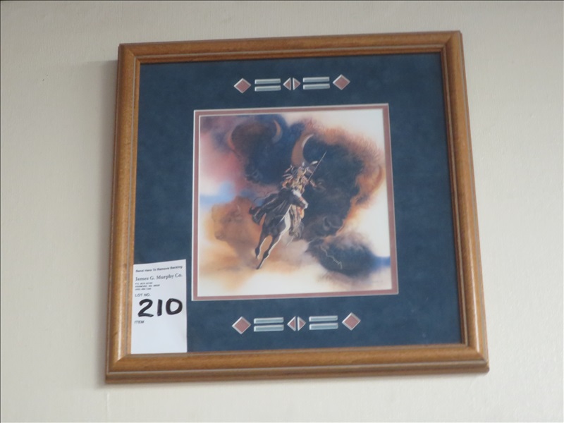 "BUFFALO WARRIOR HORSE" FRAMED ARTWORK BY BEV DOOLITTLE, 16-1/2" X 17" (NO CERTIFICATE OF AUTHENTICITY)
