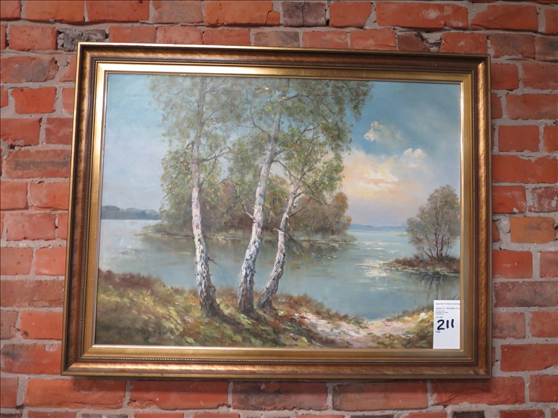 "PEACEFUL LAKE" FRAMED ARTWORK BY W. BLAETER, 36" X 28" (NO CERTIFICATE OF AUTHENTICITY)