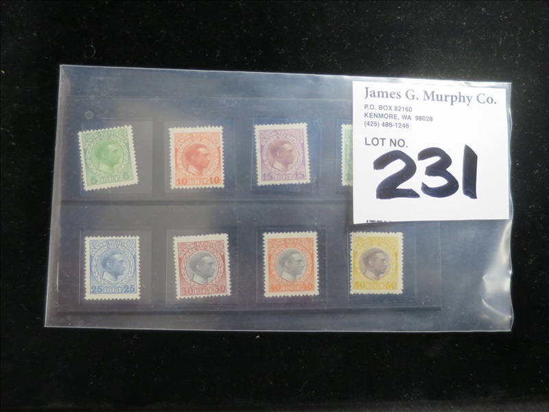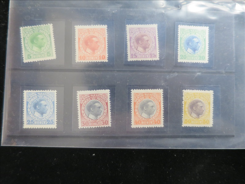 SET OF (16) DANISH WEST INDIES 5 TO 50 BIT STAMPS (FRONT & SIDE FACIAL VIEW)