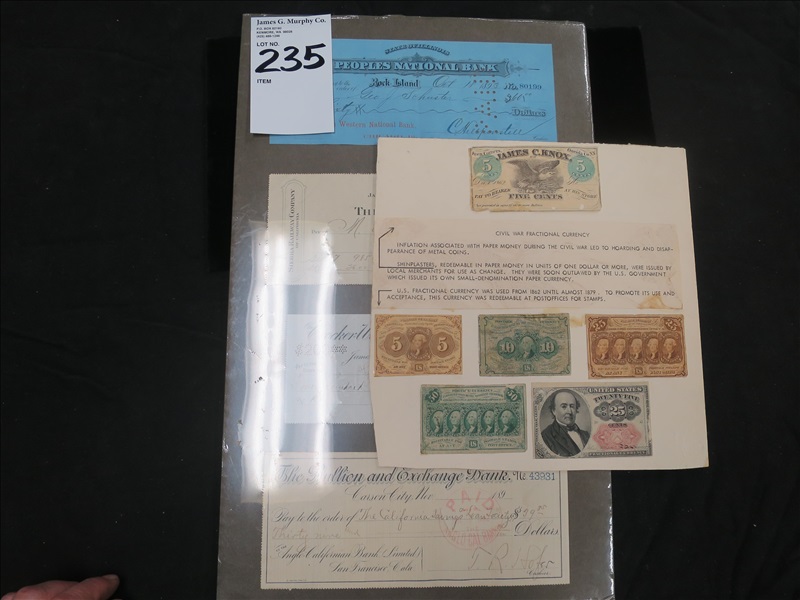 CIVIL WAR FRACTIONAL CURRENCY & 1890'S CHECKS