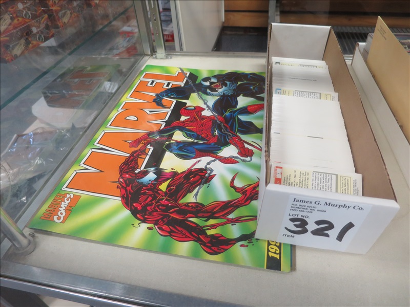 LOT, ASSORTED CAPTAIN AMERICA 1990 TRADING CARDS, 1994 MARVEL SUPER HERO & SUPER VILLAIN CALENDAR & SPIDERMAN PRINT