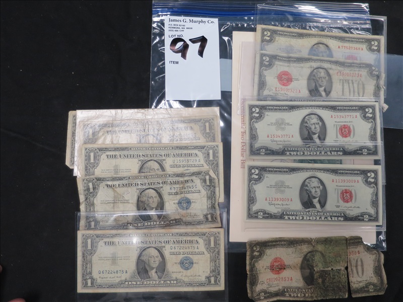 LOT, (6) ASSORTED $2 BILLS & (5) $1 SILVER CERTIFICATES