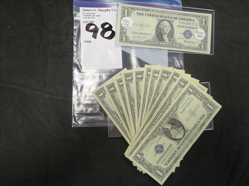 LOT, (16) ASSORTED $1 SILVER CERTIFICATES TO INCLUDE: (2) 1935-F, (8) 1957, (1) 1957-A & (5) 1957-B