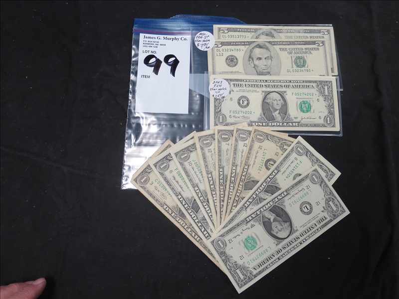 LOT, (2) $5, (11) $1 ASSORTED STAR NOTES & (1) 1963-A FEDERAL RESERVE NOTE