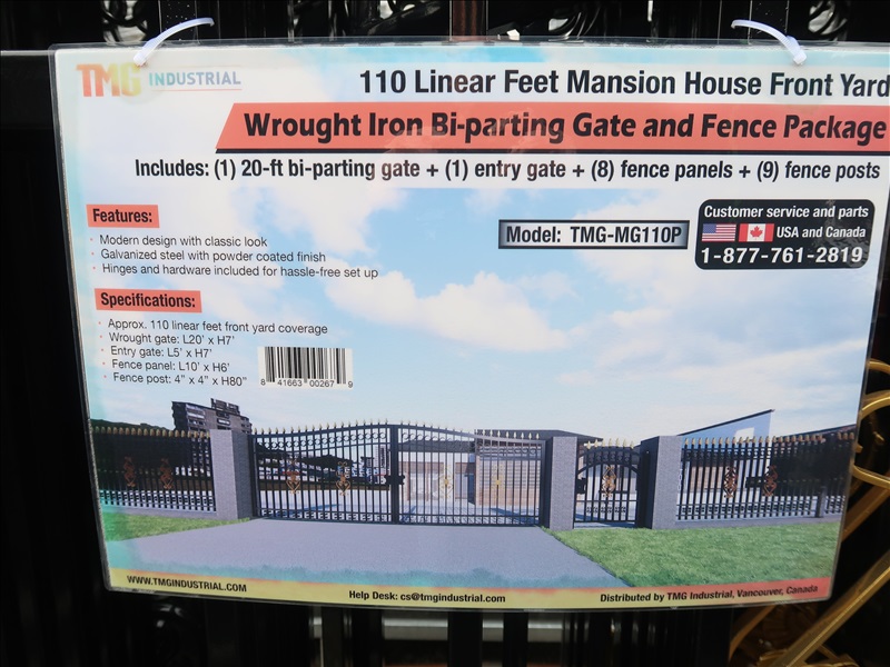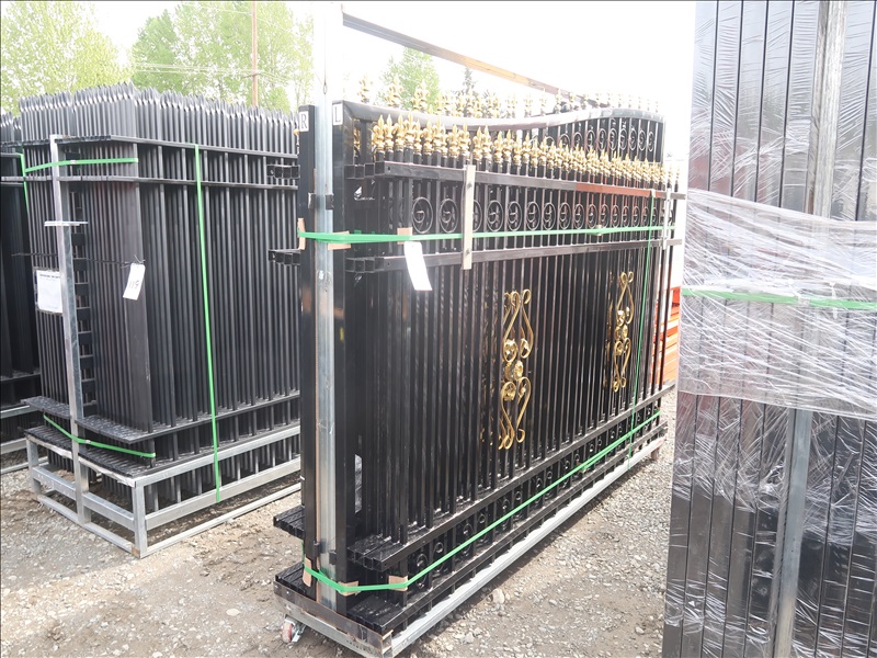 WROUGHT IRON BI-PARTING GATE & FENCE PACKAGE TO INCLUDE: (1) 20' BI-PARTING GATE, (1) ENTRY GATE, (8) FENCE PANELS & (9) FENCE POSTS, 110 LINEAR FEET (UNUSED)