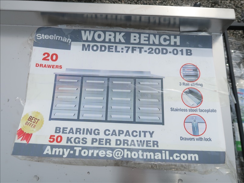 7' 20-DRAWER WORKBENCH STAINLESS DRAWERS (UNUSED)