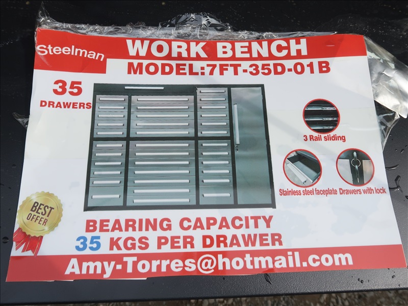 7' 35-DRAWER WORKBENCH, STAINLESS DRAWERS (UNUSED)