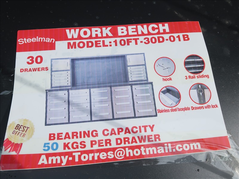10' 30-DRAWER WORKBENCH, STAINLESS DRAWERS (UNUSED)