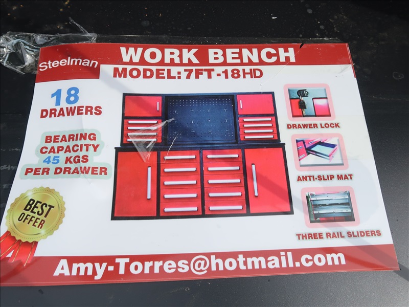 7' 18-DRAWER WORKBENCH, RED DRAWERS (UNUSED)