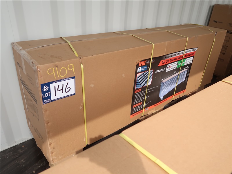 96" 24-DRAWER ROLLING WORKBENCH W/RUBBERWOOD TABLETOP, STAINLESS (UNUSED)