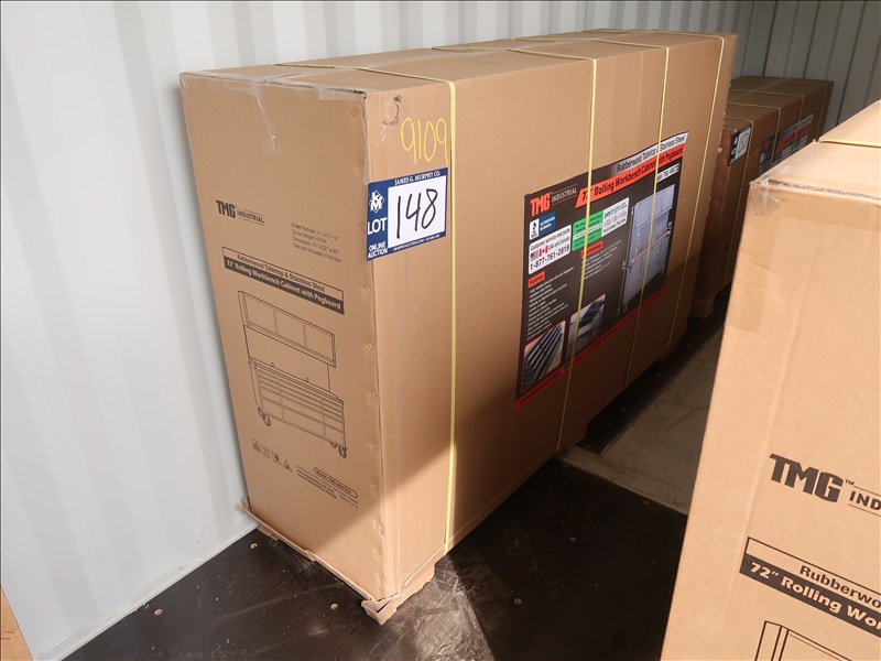 72" ROLLING WORKBENCH CABINET W/PEG BOARD, RUBBERWOOD TABLETOP, STAINLESS (UNUSED)
