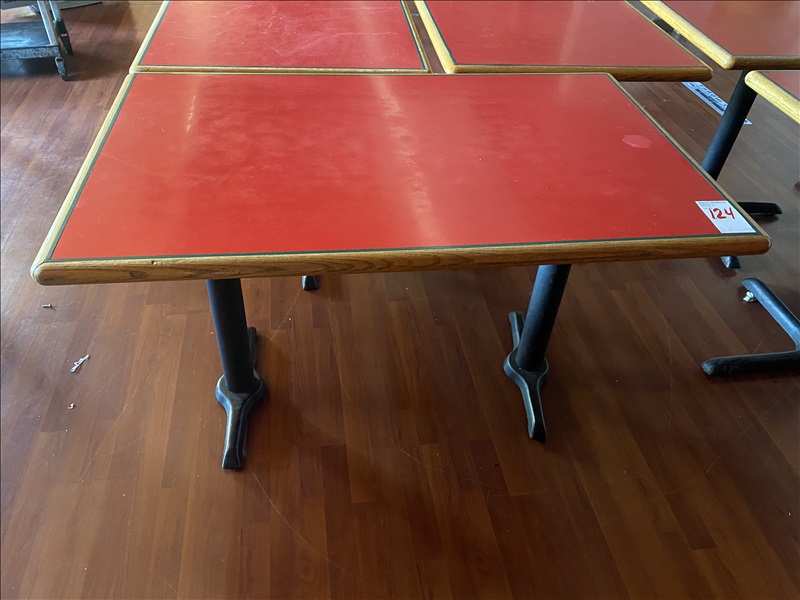 30" X 48" RED FORMICA TOP SINGLE PEDESTAL TABLE
