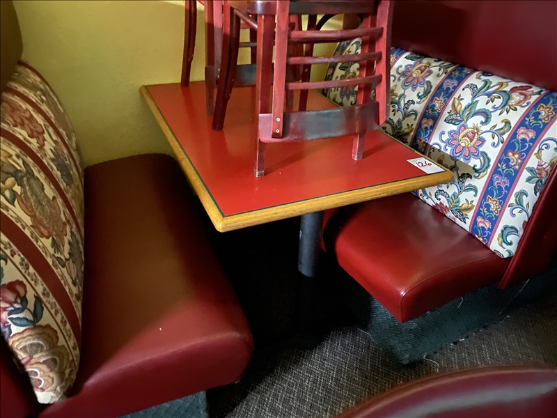 30" X 48" RED FORMICA TOP SINGLE PEDESTAL TABLE (IN BASEMENT)
