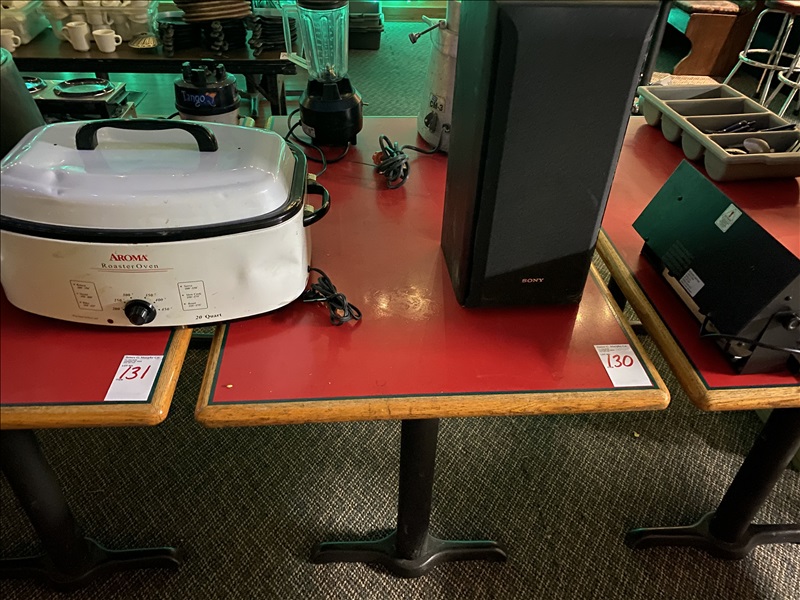 30" X 48" RED FORMICA TOP SINGLE PEDESTAL TABLE (IN BASEMENT)