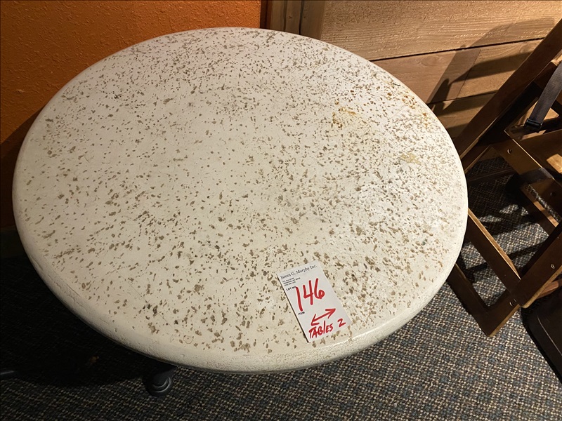 LOT, (2) 30" DIA POLY TOP OUTDOOR PATIO TABLES W/METAL BASE