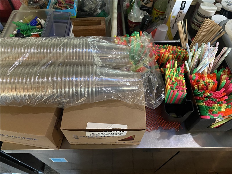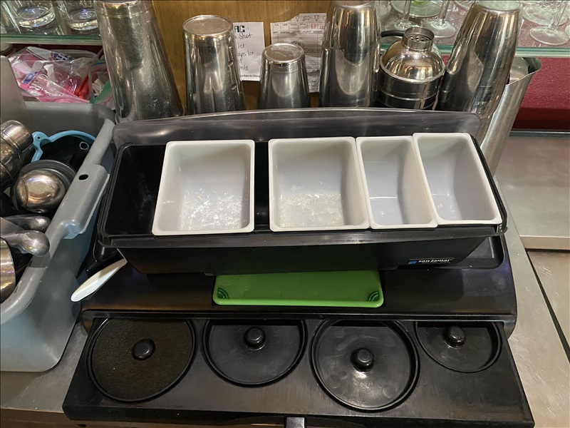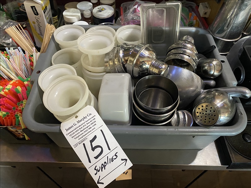 LOT, ASSORTED BARTENDER SUPPLIES ON THIS REFRIGERATOR TOP
