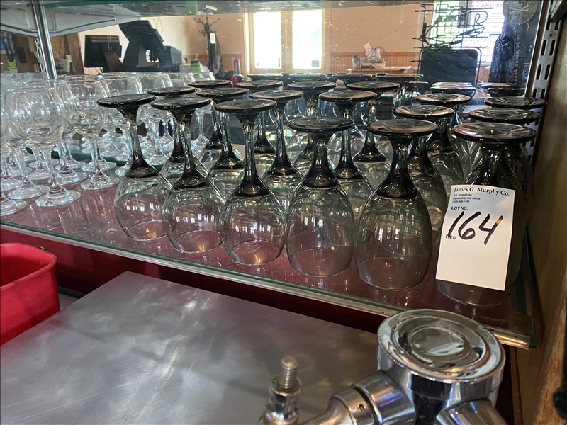 LOT, (18) ASSORTED GREENISH-GRAY WINE & WATER GOBLETS ON RIGHT SIDE OF SHELF